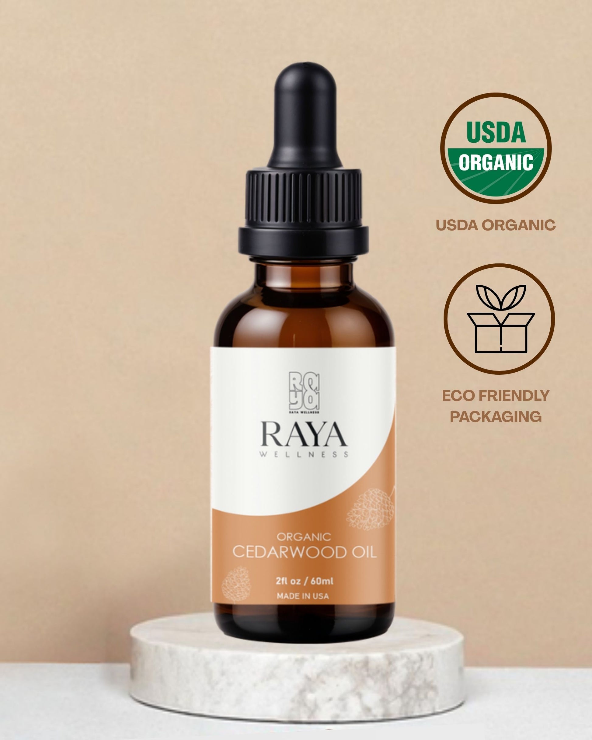 Raya Wellness Organic Cedarwood Essential Oil – 2 fl oz (60 ml) | Steam-Distilled, Warm & Woody | USDA Organic