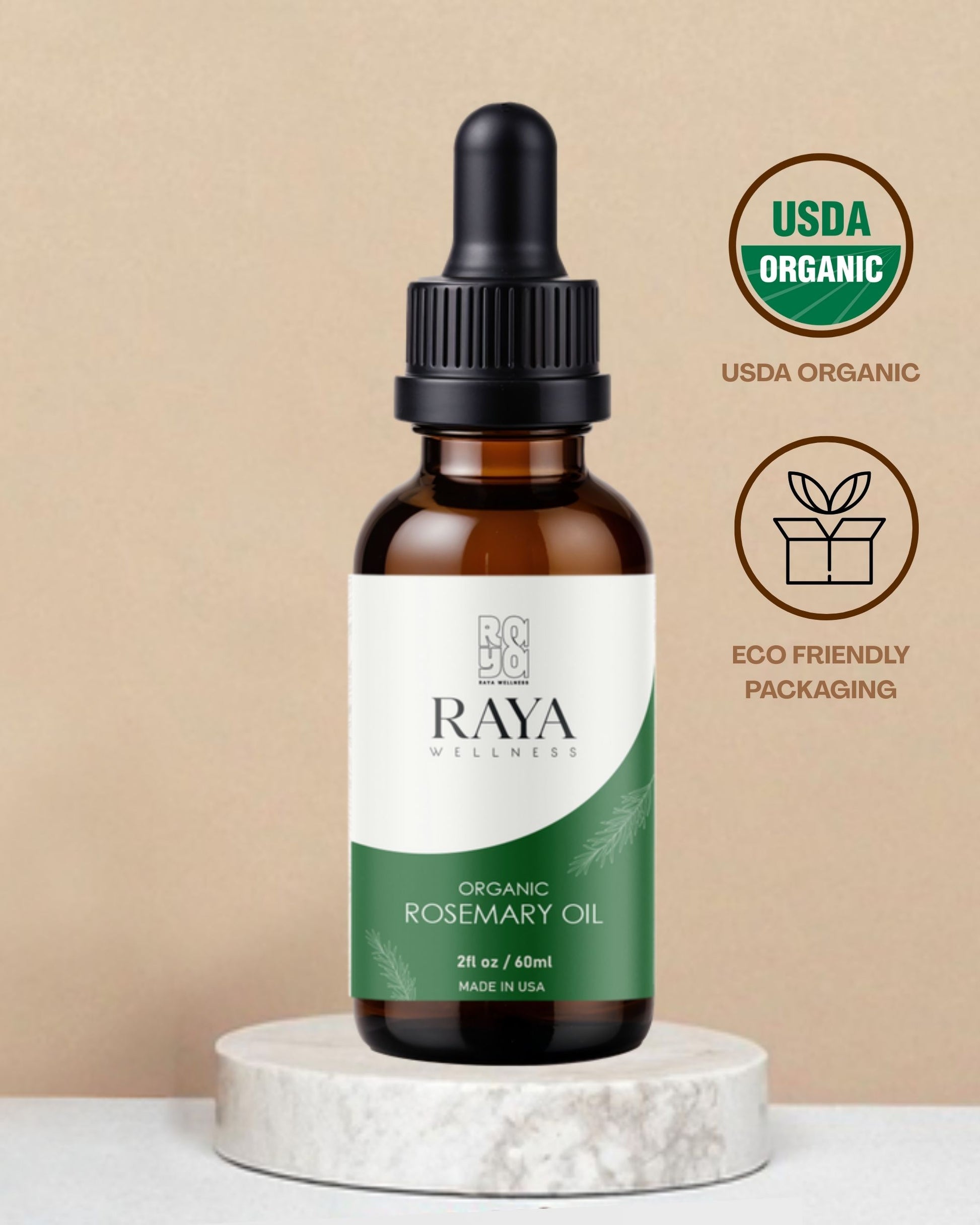 Raya Wellness Organic Rosemary Essential Oil – 2 fl oz (60 ml) | Steam-Distilled, Herbaceous Scent | USDA Organic