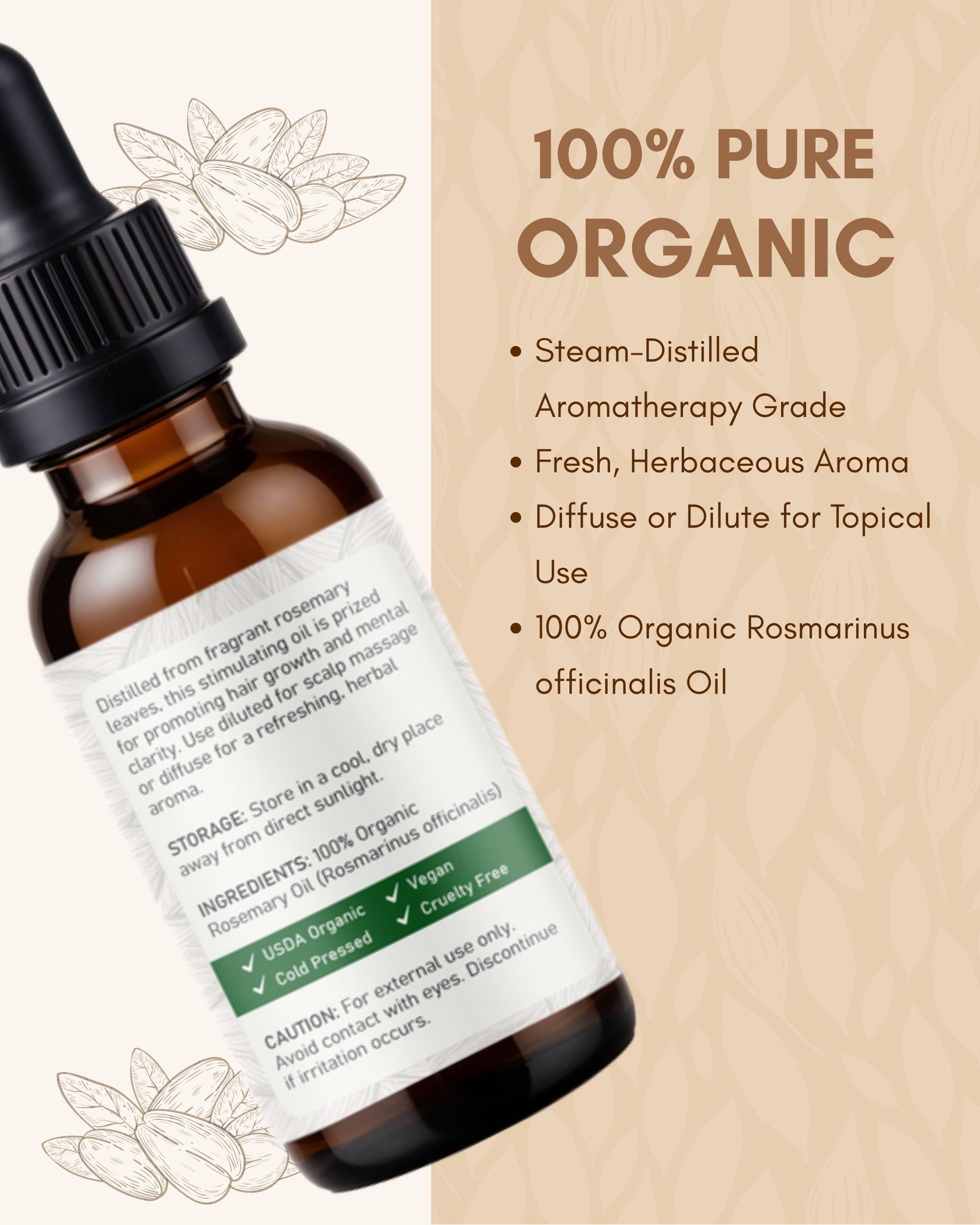 Herbaceous and uplifting, rosemary is a diffuser staple for a fresh, green atmosphere. Dilute with a carrier oil for invigorating scalp or shoulder massage. Steam-distilled, organic, and bottled in the USA. Always dilute before topical use.